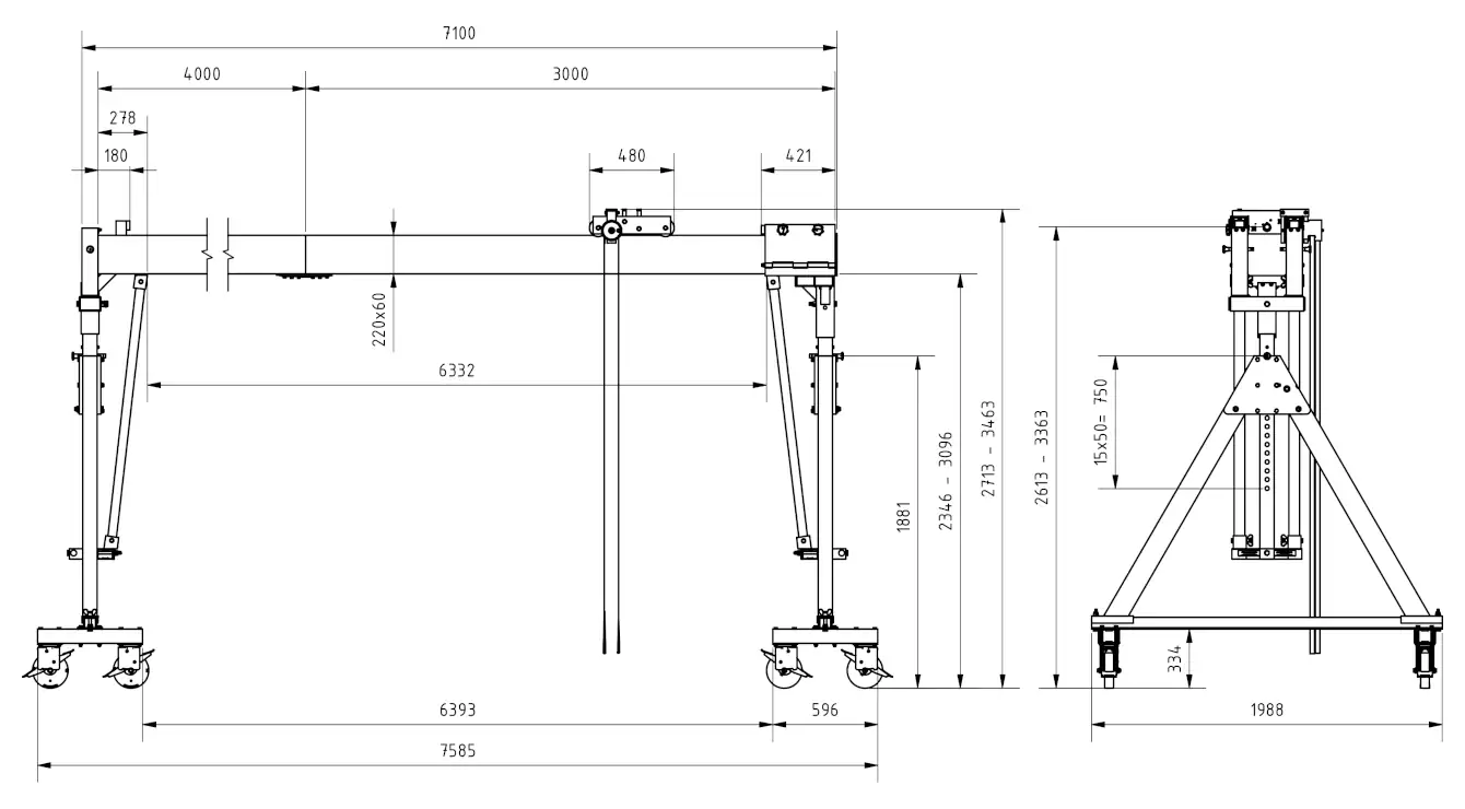 | Einhängepunkt an Laufkatze | 2613 - 3363 mm |