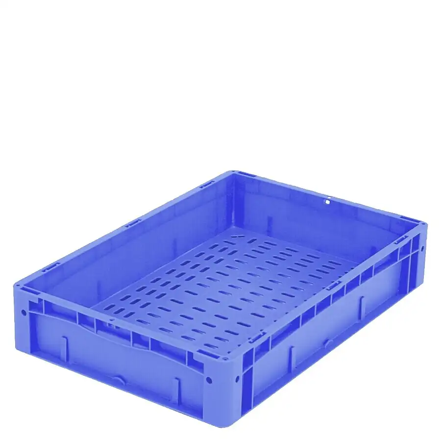 Der Boden ist verrippt und verhindert einen direkten Kontakt des Lagerguts mit dem Fußboden. Die durchbrochene Wände bringen frische Luft an Ihr Lagergut
