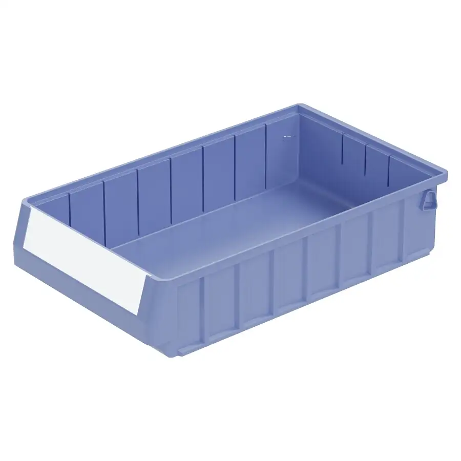 Der RK-Regalkasten von BITO ist sehr robust und stabil. Aufgrund der Form hat er selbst im gestapelten Zustand einen sicheren Stand. Griffmulden erleichtern Ihnen das Handling und den Transport. Die Größen sind genau auf die verschiedenen BITO-Regalsysteme abgestimmt. Da für jeden Behälter ein passendes Etikett im Lieferumfang inbegriffen ist, können Sie den jeweiligen Inhalt ganz einfach kennzeichnen.