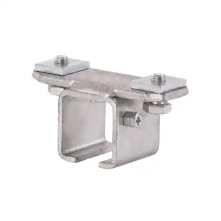 Schienenhalter, einteilig mit Vierkantmutter für Befestigung an Spannarmen.