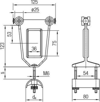 Abmessungen des Conductix-Wampfler Mitnehmerwagen aus Kunststoff
