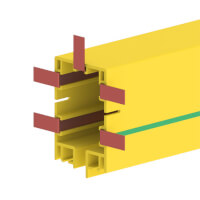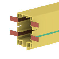 Die Leiterbänder aus Kupfer oder DATA-Metall sind in hochwertigen Kunstoffisolierprofilen fixiert und in 4, 5 und 7 poliger Ausführung von 35 bis 140 A Nennstrom verfügbar.