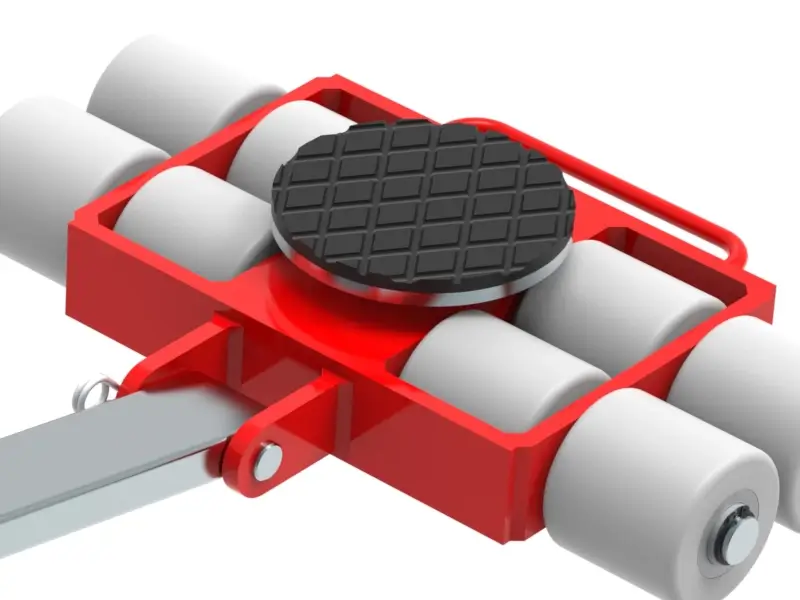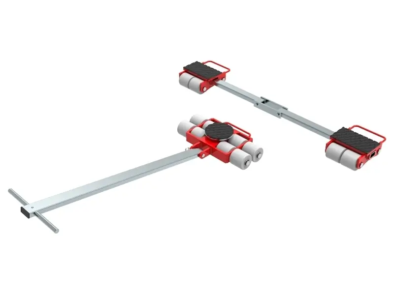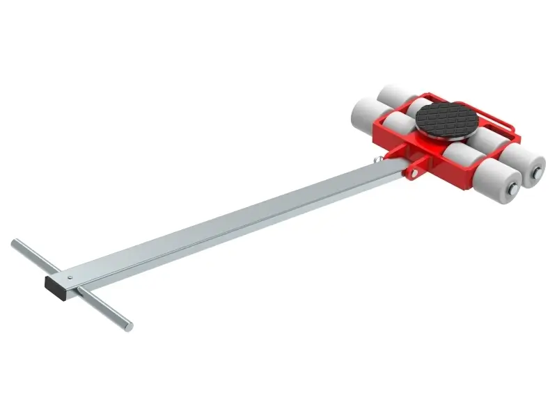 Schwerlasttransportfahrwerk für den professionellen innerbetrieblichen Schwerguttransport auf sauberen und ebenen Böden. Ausführung inkl. Deichsel mit Handgriff oder Anhängeöse, Drehteller mit rutschfestem Waffelgummibelag und hochwertigen HTS Nylonrollen, die abriebfest und nicht markierend sind und für alle glatten Industrieböden geeignet. In Kombination mit einem S-, DUO oder zwei ROTO Fahrwerken mit gleicher Einbauhöhe bilden diese Fahrwerke ein sicheres Gesamtsystem mit 3 Aufnahmepunkten.