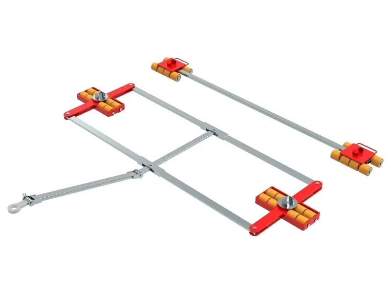 Containertransportfahrwerk für den professionellen innerbetrieblichen Transport von Isocontainern auf sauberen und ebenen Böden. Ausführung inkl. Verbindungsstangen, Deichsel mit Anhängeöse, Auflagefläche glatt mit ISO Container Kegel bzw. Container Sicherung mit Twist Lock (TLS) und hochwertigen HTS 3-Komponenten Polyurethanrollen, die abriebfest, schnitthemmend und nicht markierend sind sowie für alle Böden mit leichten Unebenheiten geeignet. In Kombination mit einem ISOCON Fahrwerk (DUO, S, ROTO) mit gleicher Einbauhöhe, bilden diese Fahrwerke ein sicheres Gesamtsystem mit 4 Aufnahmepunkten für ISO Container. Bitte beachten Sie den Einschlagwinkel von max. 45°. Bei voll ausgenutztem Einschlagwinkel des Fahrwerkes, darf kein zusätzlicher Lenkeinschlag des Zuggerätes erfolgen (siehe Bedienanleitung).