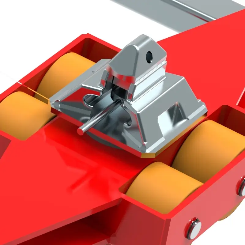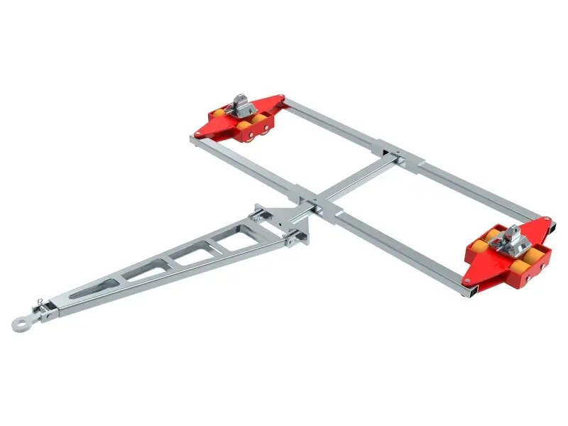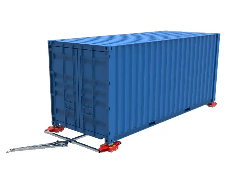 Containertransportfahrwerk für den professionellen innerbetrieblichen Transport von Isocontainern auf sauberen und ebenen Böden. Ausführung inkl. Verbindungsstangen, Deichsel mit Anhängeöse, Auflagefläche glatt mit ISO Container Kegel bzw. Container Sicherung mit Twist Lock (TLS) und hochwertigen HTS 3-Komponenten Polyurethanrollen, die abriebfest, schnitthemmend und nicht markierend sind sowie für alle Böden mit leichten Unebenheiten geeignet. In Kombination mit einem ISOCON Fahrwerk (DUO, S, ROTO) mit gleicher Einbauhöhe, bilden diese Fahrwerke ein sicheres Gesamtsystem mit 4 Aufnahmepunkten für ISO Container. Bitte beachten Sie den Einschlagwinkel von max. 45°. Bei voll ausgenutztem Einschlagwinkel des Fahrwerkes, darf kein zusätzlicher Lenkeinschlag des Zuggerätes erfolgen (siehe Bedienanleitung).