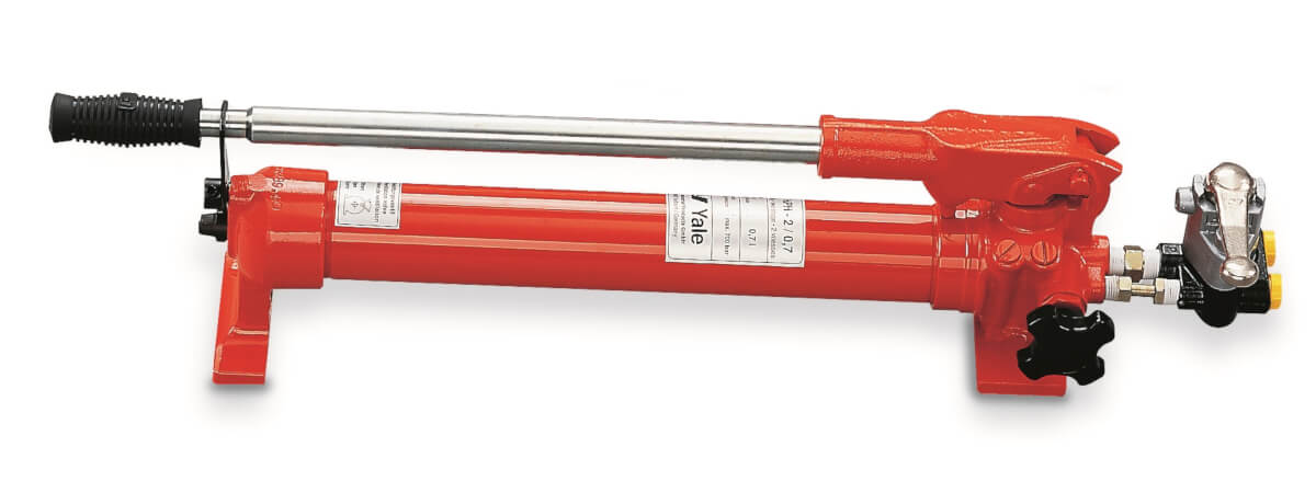 Die Transportkiste von Yale ist aus Metall und bietet Platz für sämtliches Zubehör rund um die Pumpe. Zylinder, Schläuche und Verteiler lassen sich bequem und sauber unterbringen.