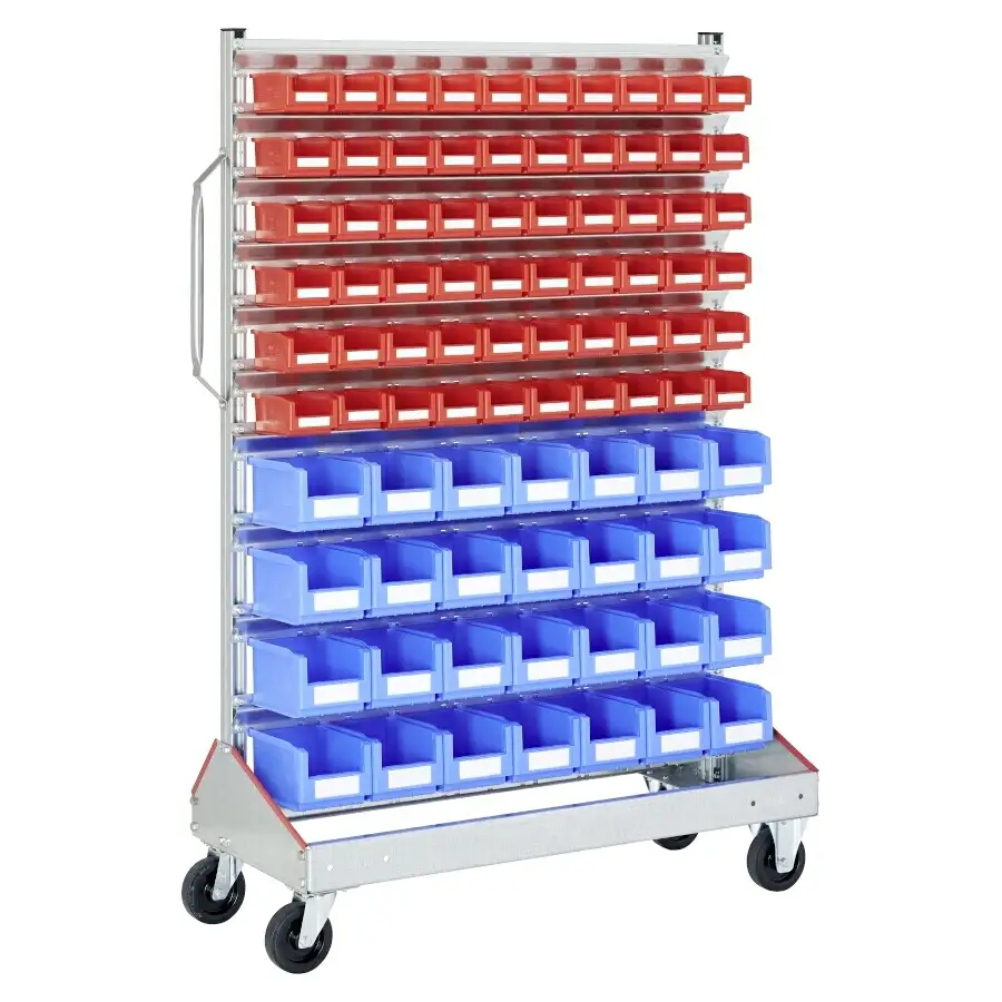 Mit dem einseitigen Sichtrollwagen haben Sie die passenden Kleinteile immer direkt am Platz. Die Wagen ist robust und mobil innerhalb Ihrer Werkstatt einsetzbar. Der Aufbau besteht aus Sichtlagerkästen, deren Größe und Anzahl Sie individuell und nach eigenem Bedarf zusammenstellen können.
