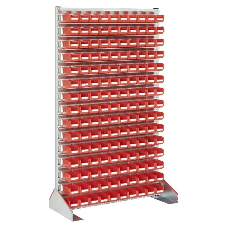 Die kompakten und vielseitigen Ständerregale lassen sich als Ablage für alle Kleinteile in Werkstätten verwenden und sorgen für Ordnung und Übersicht.