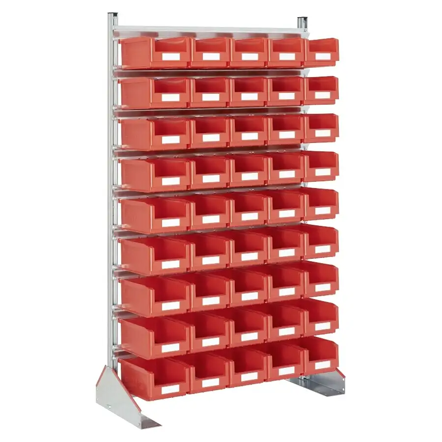 Die kompakten und vielseitigen Ständerregale lassen sich als Ablage für alle Kleinteile in Werkstätten verwenden und sorgen für Ordnung und Übersicht.