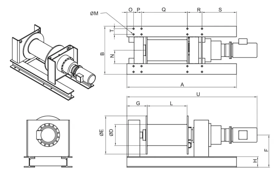 Die Winde ist entsprechend der vorgesehenen Lastfälle auf einem ausreichend tragfähigen Untergrund zu befestigen. Für die Befestigung werden gemäß Bedienhinweisen 16 Schrauben in Festigkeitsklasse 8.8 verwendet; die erforderliche Schraubengröße und das Mindest-Anzugsmoment sind abhängig von der Seilzugfähigkeit.