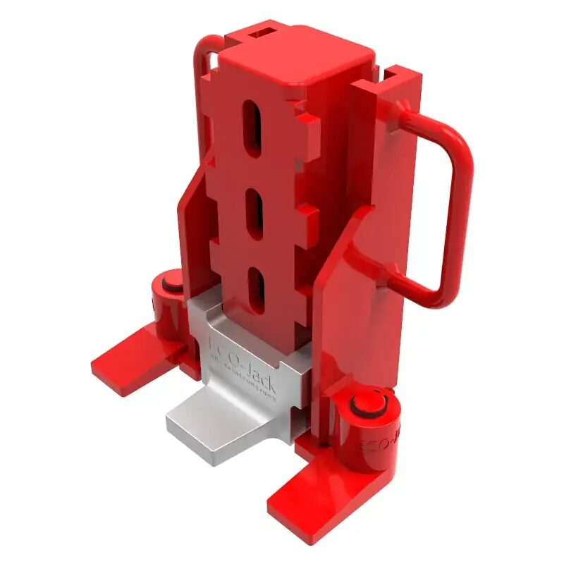Der Maschinenheber der ECO-Jack® XR-Serie benötigt im Gegensatz zur ECO-Jack® S-Serie eine externe Hydraulikhandpumpe. Alternativ kann er auch über ein Elektroaggregat angesteuert werden. Hierzu verfügt er über eine Hydraulikmuffe auf die ein Hydraulikschlauch leckagefrei angeschlossen werden kann.