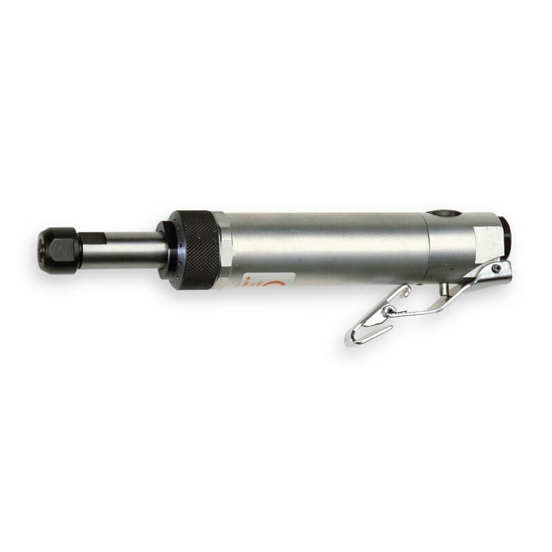 Dieser Stabschleifer von Yokota hat eine 6mm-Spannzange und wurde für Nacharbeiten in Gießereien konstruiert. Luftaustritt befindet sich bei dieser Maschine vorne.
