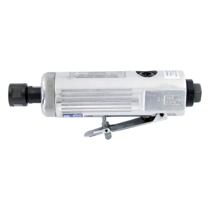 Dieser Stabschleifer von Toku hat eine 6mm Spannzange und wurde für Nacharbeiten in Gießereien konstruiert. Der Luftaustritt befindet sich bei dieser Maschine hinten. Ideal zum Entfernen von Graten am Material, zum Glätten von Schweißnähten usw.