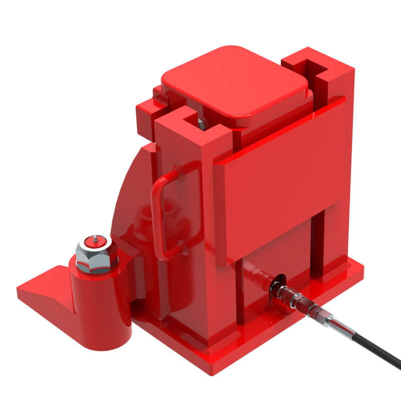 Der Maschinenheber der ECO-Jack® XR-Serie benötigt im Gegensatz zur ECO-Jack® S-Serie eine externe Hydraulikhandpumpe. Alternativ kann er auch über ein Elektroaggregat angesteuert werden. Hierzu verfügt er über eine Hydraulikmuffe auf die ein Hydraulikschlauch leckagefrei angeschlossen werden kann.