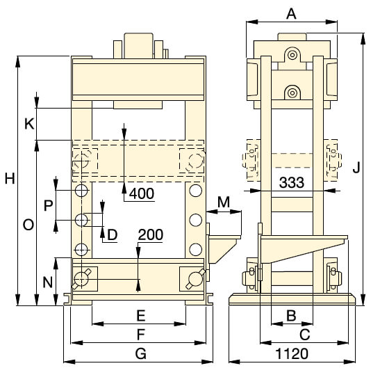 Die Pressrahmen sind seitlich zugänglich und verfügen über eine Höheneinstellung des Ober- und Unterjochs.
