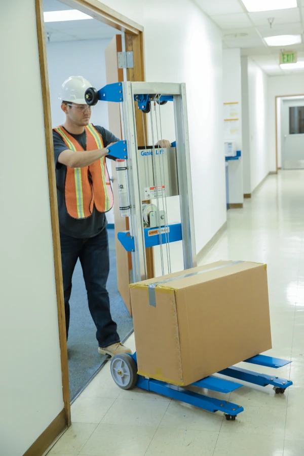 Der GL4 STD überzeugt durch seine intuitive Handhabung und den werkzeuglosen Aufbau. Dank der integrierten manuellen Lasthaltewinde lassen sich Lasten sicher und kontrolliert heben oder absenken. Die Transportrollen und das leichte Aluminiumdesign ermöglichen einen mühelosen Transport und die flexible Nutzung durch nur eine Person. Der Lift passt mit eingefahrenem Mast problemlos durch Standardtüren und kann überall schnell eingesetzt werden.