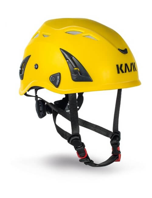 Der SUPERPLASMA PL von KASK ist ein reiner Kletterhelm nach EN 12492. Er darf nur und ausschließlich im Bergsport verwendet werden. Seine harte Außenschale schützt vor mechanischen Stößen beispielsweise bei Steinschlag und Stürzen auf den Kopf. Zudem bietet der Helm eine sichere Stoßdämpfung nicht nur vor vertikalen Schlägen sondern auch vor frontalen, lateralen oder dorsalen Stößen. Seine Durchdringungsfestigkeit hält spitze Steine und Gegenstände ab. Die zehn Belüftungsschlitze sorgen für eine frische Luftzirkulation. Sie sind mit einem Gitter abgedeckt, das ein Eindringen von Schutt verhindert. Der Kinnriemen löst sich erst bei einer Zugkraft von mindestens 500 N und verhindert so, dass der Helm nach einem Sturz abhanden kommt. Gemäß der EN 12492 darf der Helm nicht vom Kopf gleiten. Ein wesentlicher Unterschied zur EN 397, bei der sich der Kinnriemen eines Industrieschutzhelms schon bei spätestens 250 N lösen muss. Dies soll einer Strangulation vorbeugen.