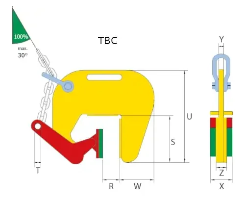 Die Serie besteht aus zwei Hauptvarianten: TBC mit Standard-Greifbereich sowie TBC-A mit extra großer Greifweite, die in 25 mm-Schritten eingestellt werden kann. Beide Ausführungen sind für eine WLL 1000 kg ausgelegt (Herstellerangabe) und werden zur sicheren Lastaufnahme paarweise oder zu dritt eingesetzt.