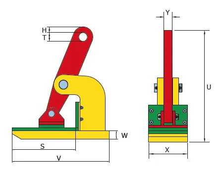 Die Klemme besitzt einen robust verschweißten Klemmenkörper und ist als kompakte Lösung für das Handling von Platten ausgelegt. Die Greifbacken bzw. das Greifelement sind mit einem druckunempfindlichen Schutzmaterial abgedeckt, um die Oberfläche zu schonen. Durch das leichtgewichtige Design (je nach Ausführung) ist die Handhabung im täglichen Einsatz erleichtert.