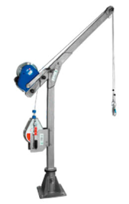 Die Personen- und Lastwinde PLW verfügt über ein 30 m langes Seil. Die Winde ermöglicht ein leichtes ruckfreies Heben und Senken von Personen und Gütern mit einer maximalen Traglast von 300 kg. Das Edelstahlseil mit einem Durchmesser von 6 mm bringt die nötigen Sicherheiten mit sich um Personen befördern zu dürfen. Die Lastdruckbremse hält in jeder Lage und greift automatisch ein sobald der Kurbeldruck nachlässt. Die Winde wiegt ca. 18.5 kg und wird mittels Adapter auf dem Auslegerarm befestigt.