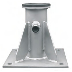 Die Bodenhülse aus V4A wird stationär auf einer Betonsohle oder einer Metallkonstruktion aufgeschraubt. Für die Montage auf Beton empfiehlt der Hesteller Injektionsankersysteme. Bei Stahlkonstruktionen eignen sich Maschienenschrauben M16. Die Bodenhülse, das Befestigungsmaterial und der Untergrund müssen die im Falle eines Sturzes auftretenden Kräften aufnehmen können. Dieser Nachweis ist Bauseits zu führen. Die Hülse ist Bestandteil der Anschlageinrichtung vom Typ Auslegerarme ASS-1 und ASS-3 nach EN 795 Typ A. Sie besteht aus hochwertigem Edelstahl 1.4571 (V4A) und ist damit witterungsbeständig. Ihre Drehlagerung ist aus widerstandsfähigem Polyamid (PA) gefertigt. Zur Fixierung der Auslegerarmstellung dient ein Rastbolzen (V4A). Eine klemmbare, staub- und spritzwasserdichte Schutzabdeckung aus Polyamid ist optional erhältlich.
