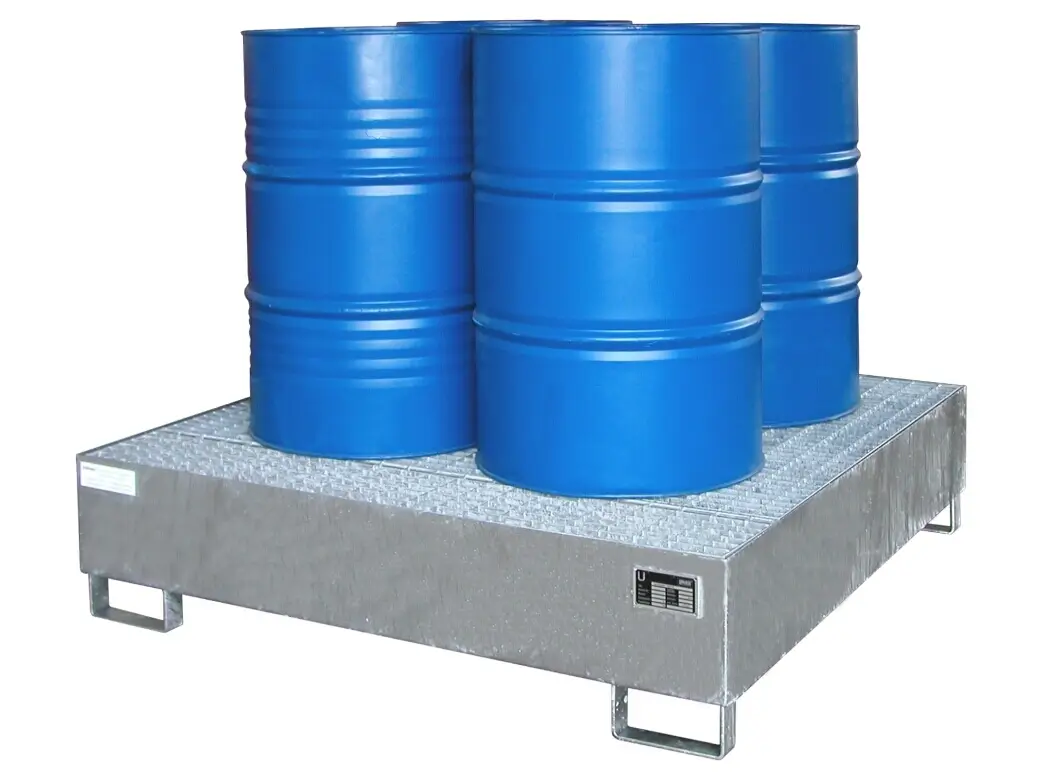 Lagerung von max. 10 Fässern a 200 Liter oder max. 3 Containern (IBC) a 1000 Liter, auch mit 60-l-Fässern und Kleingebinden kombinierbar.