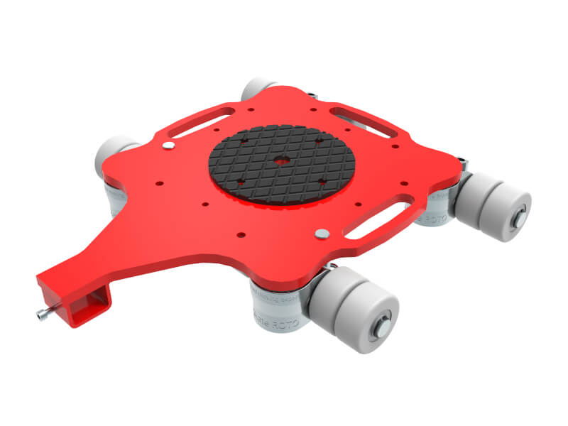 Die neuen ECO-Skate® ROTOflex und ROTOflex XL Rotationsfahrwerke können optional mit Verbindungsstangen, Deichseln und montierbarem Drehteller sowie Steckbolzen zu Multifunktionsfahrwerken umgebaut werden. Zum Einsatz kommen sie als klassisches, um 360° drehbares Rotationsfahrwerk und als starres, lenkbares odersogenanntes EZ-GO (Easy-GO) Fahrwerk. Hierbei führt der aufgesetzte Drehteller zu einer ungekannten Leichgängigkeit beim Verfahren von Lasten. Die Fahrwerke sind auch ohne Gummibelag erhältlich. Hierfür gibt es zahlreiche Sonderausstattung.
