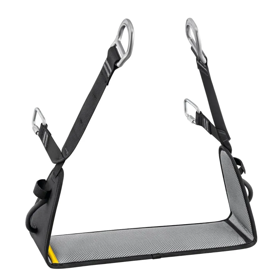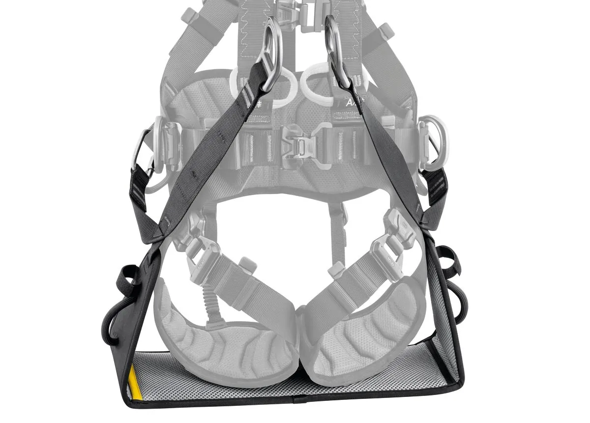 Das Sitzbrett für die VOLT-Gurte wird an den hierfür vorgesehenen Befestigungsmöglichkeiten des Gurts installiert. Es verbessert den Komfort des Anwenders beim freihängenden Arbeiten.