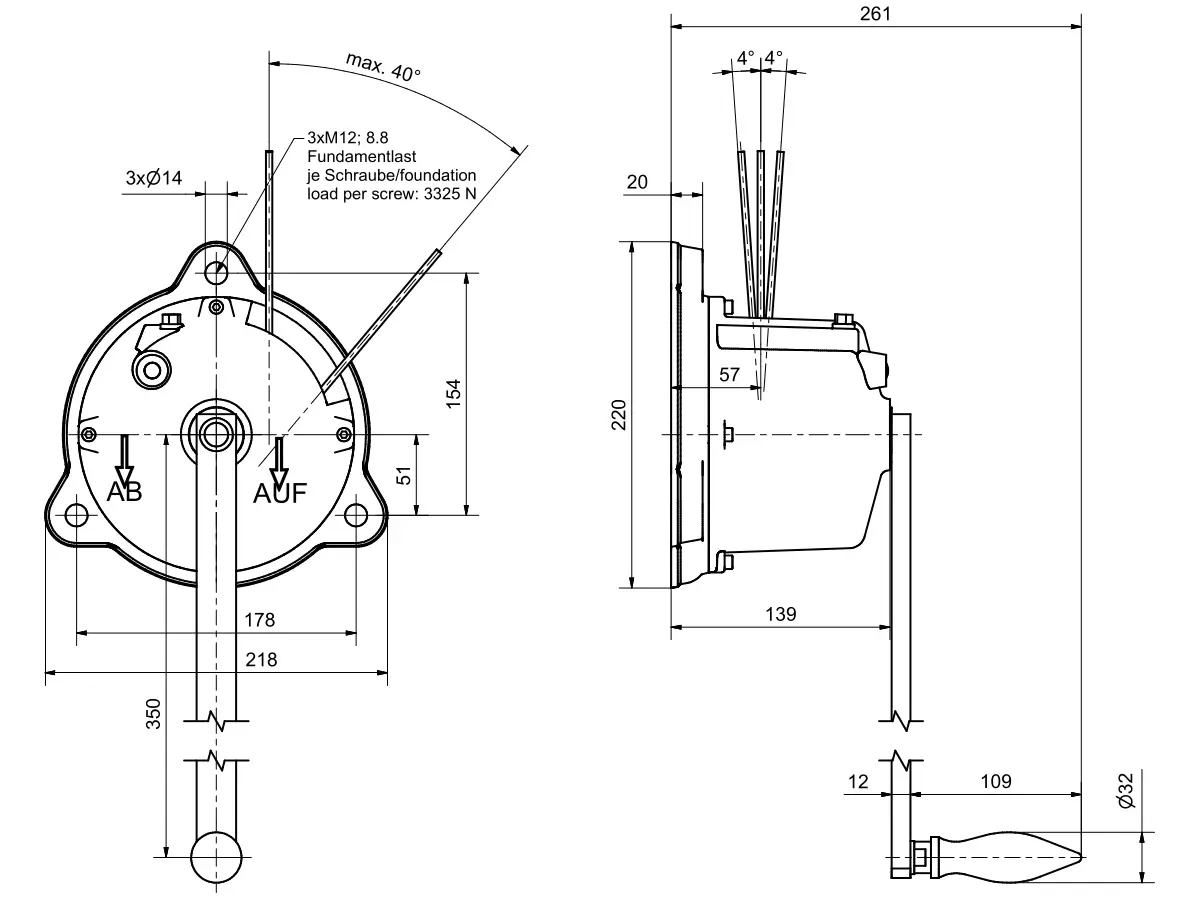 Adler Seilwinde WH 1 Abmessungen