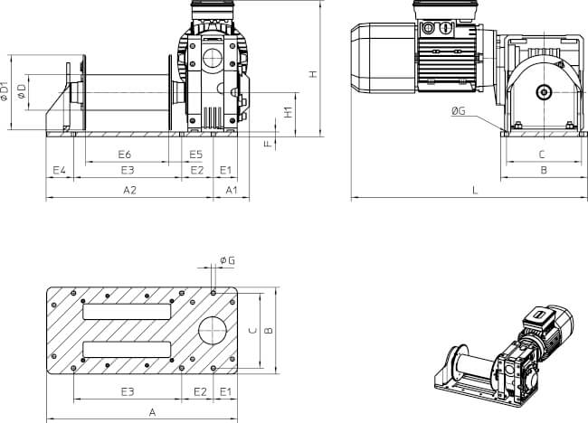 Masszeichnung von Haacon Elektroseilwinde ESG