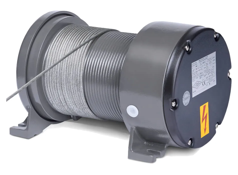 Der in der Seiltrommel angeordnete Einbaubremsmotor ermöglicht eine extrem kompakte Bauform. Die äußerst robuste Ausführung ist wartungsarm und gewährleistet eine lange Lebensdauer. Der Drahtseilabgang ist nach allen Richtungen möglich. Die Elektroseilwinde ist vollkommen gekapselt (Schutzart IP 54) und hierdurch witterungsbeständig.