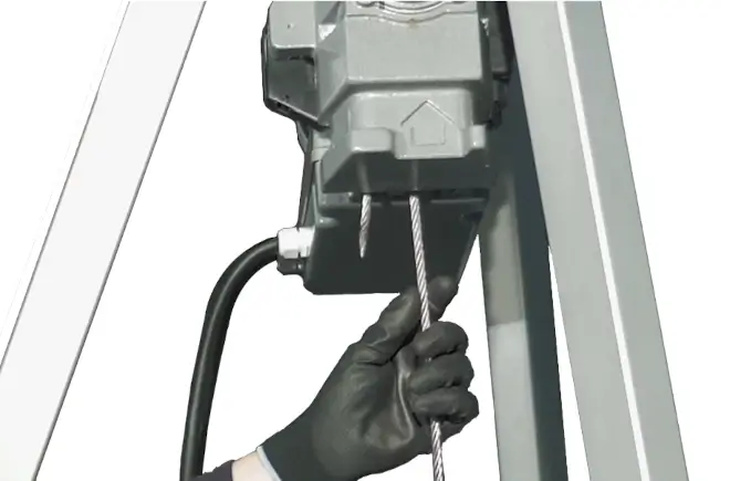 Der Minifor ist serienmäßig mit Endschaltern am Seil-Ein und -Auslauf ausgestattet. An beiden Seilenden wird eine Endschalterfeder zur Hubbegrenzung mittels Innensechskantschlüssel auf dem Seil befestigt. Trifft die Feder auf einen Endschalter, wird die Hubrichtung elektrisch unterbrochen. Ein Weiterbetrieb ist dann nur noch in die andere Hubrichtung möglich. Die Federn am Endschalter ermöglichen ein Auslaufen der Hubbewegung und verhindern ein hartes Anschlagen der Endanschläge.