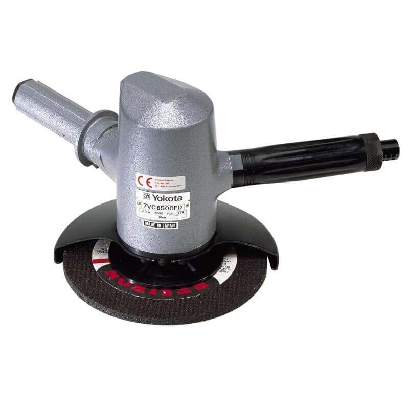 Die Vertikalschleifer 7VC von Yokota sind leistungsstarke Druckluft-Vertikalschleifer für schwere Schrupp- und Schleifarbeiten in Industrie, Stahlbau und auf Schiffswerften. Ein integrierter Drehzahlregler sorgt für die korrekte Umfangsgeschwindigkeit der Schleifscheibe und erhöht damit sowohl den Wirkungsgrad als auch die Arbeitssicherheit.