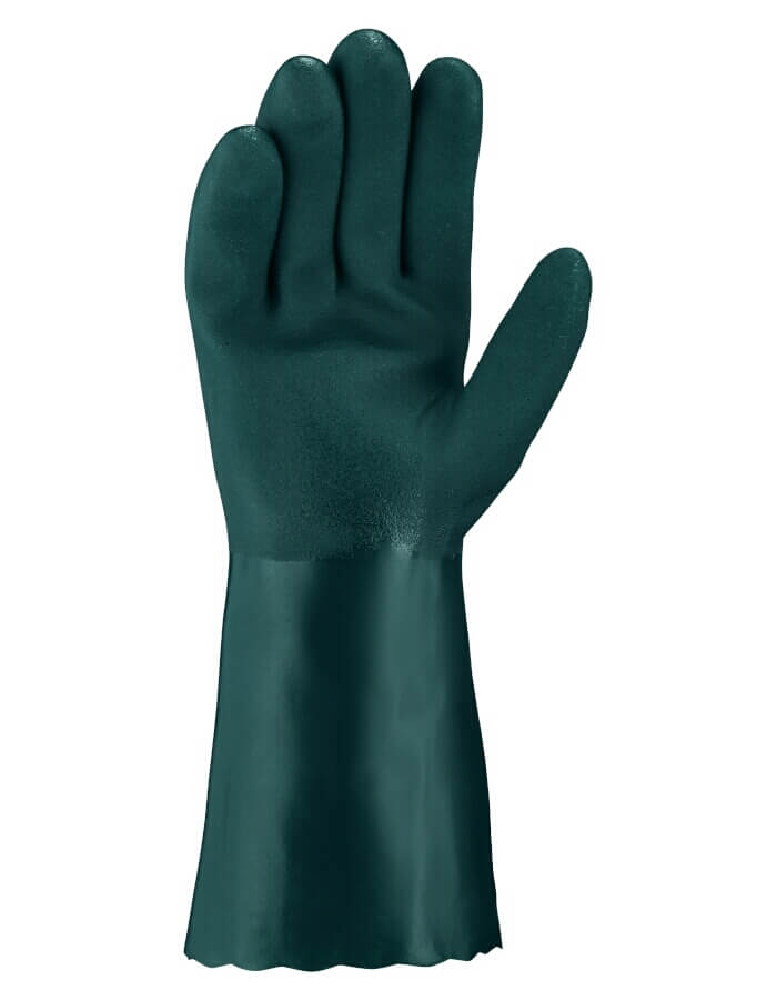 Die hochwertigen »topline«-Chemikalienschutzhandschuhe Typ 2151 aus Polyvinylchlorid haben ein leichtes Baumwolljersey-Futter und sind im Handbereich aufgeraut. Mit ihrer aufgerauten Oberfläche ermöglichen sie einen exzellenten Griff beim Umgang mit nassen und glatten Gegenständen. Sie sind selikonfrei, hoch flexibel, flüssigkeitsbeständig und verfügen über eine hervorragende Beständigkeit gegen verschiedene Chemikalien, Flüssigkeiten und Öle. Auf Grund ihrer guten Beständigkeit gegen Abrieb sind sie besonders langlebig. Die Chemikalienschutz-Handschuhe PVC grün sind in unterschiedlichen Längen erhältlich.