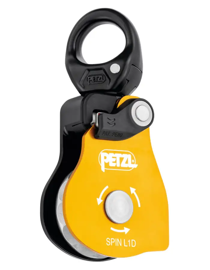 Die Umlenkrolle SPIN L1D lässt sich öffnen, auch wenn sie am Anschlagpunkt befestigt ist. Sie wird zusammen mit einem Abseilgerät eingesetzt, um das Einrichten eines Umlenksystems für schwere Lasten zu erleichtern. Die mit Abschrägungen versehene Laufrolle mit nur einer Laufrichtung gewährleistet einen ausgezeichneten Wirkungsgrad beim Heben von Lasten und bietet zusätzliche Kontaktflächen mit dem Seil, um die Bremsreibung beim Ablassen zu erhöhen. Das Handling wird durch einen Wirbel erleichtert, welcher eine Ausrichtung der Umlenkrolle unter Last sowie ein direktes Einhängen von Karabinern, Seilen oder Schlingen ermöglicht.