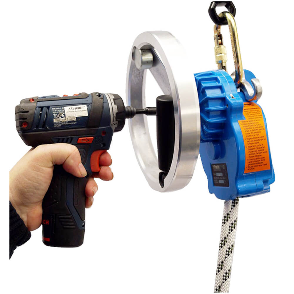 Die Serie UP erlaubt die Nutzung eines Akkuschraubers um die Hubgeschwindigkeit zu erhöhen und den Retter zu entlasten. Es kann jeder handelsübliche Akkuschrauber verwendet werden, der mindestens eine Leistung von 300 W erbringt. Bei Benutzung eines Akkuschraubers muss dieser einen Akku mit einer Spannung von mindestens 14 V besitzen, um die für die Rettung erforderliche Leistung zu gewährleisten. Der Akkuschrauber ist nicht im Lieferumfang enthalten.