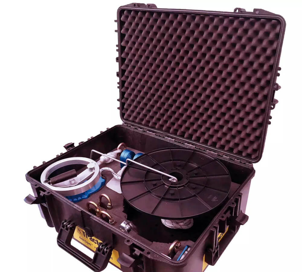 Ausgestattet mit einer Tractel® patentierten Seilhaspel, welche die Gefahr der Seilverknotung beseitigt, wenn dies geworfen wird.