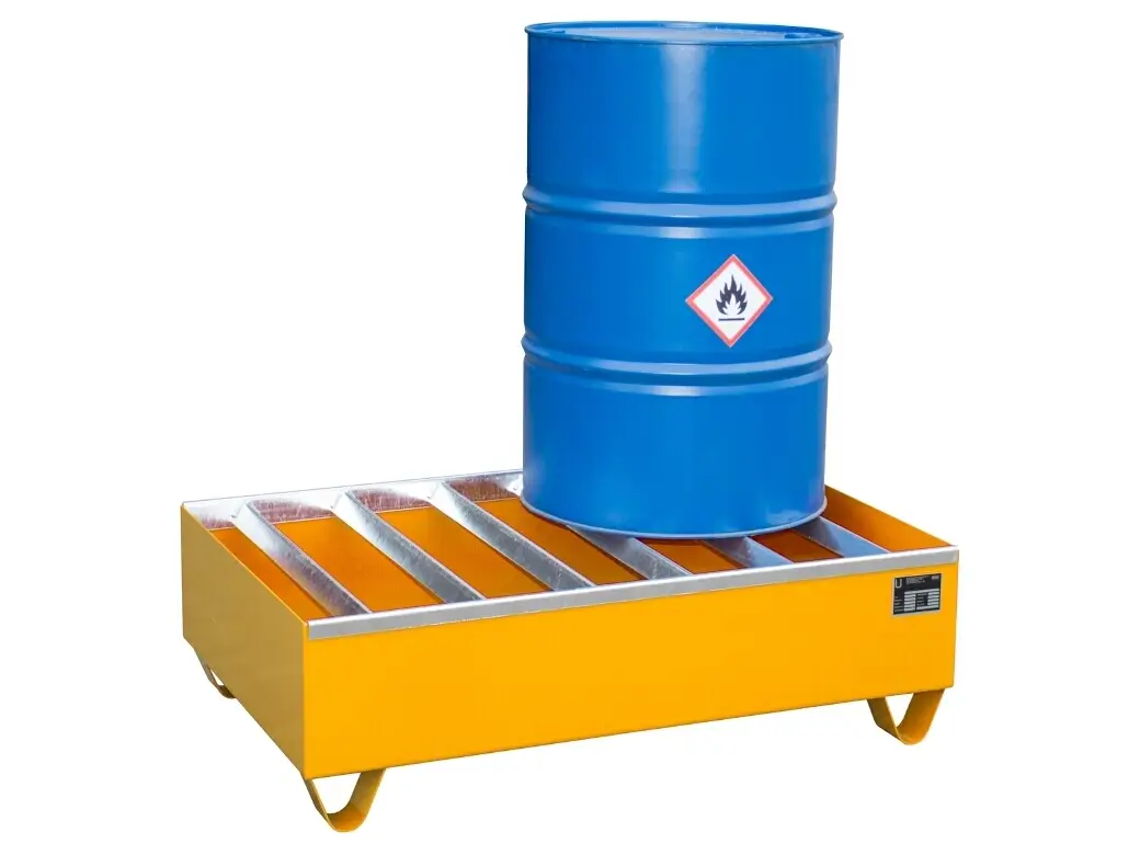 Die Bauer Profilwanne PW ist speziell für die Lagerung von Fässern konzipiert. Mit einer maximalen Kapazität von 4 Fässern á 200 Litern ist sie ein ideales Mittel für kleine bis mittelgroße Lagerbestände. Die Konstruktion besteht aus 3 mm Stahlblech und bietet damit eine robuste und langlebige Struktur. Ein besonderes Merkmal der Bauer Profilwanne PW ist das Profil auf der Standfläche, das für zusätzliche Stabilität und Tragfähigkeit sorgt. Die Stützfüße haben eine Unterfahrhöhe von 100 mm, wodurch eine problemlose Unterbringung von Gabelstaplern möglich ist.