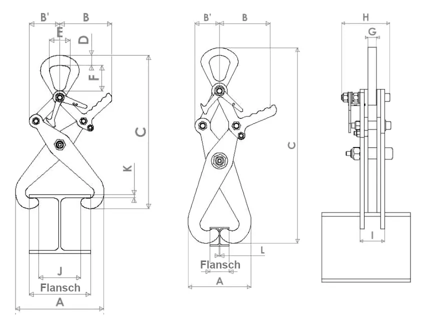 Laut Betriebsanleitung sind Profilklemmen dieser Produktfamilie als Zubehör zum horizontalen Heben von Profilen/Trägern (I-, H-Form) ausgelegt und können – abhängig vom Einsatzfall – einzeln oder paarweise mit Traverse eingesetzt werden. Für den Betrieb mit Traverse ist wichtig, dass die Konstruktion die Klemmen im Einsatz vertikal führt.