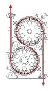 Die T-Baureihe ist das erste Modell der tirak™-Baureihe bei dem das Drahtseil in einer S-förmigen Bewegung an den beiden Treibscheiben entlangläuft. Durch den symmetrischen Aufbau der T-Baureihe können diese Modelle als einzige mit gleicher Kraft in beide Richtungen ziehen. Das macht sie ideal einsetzbar z.B. bei allen horizontalen Aufgaben, wo Lasten hin und her bewegt werden müssen. Bei allen Modellen erreicht man durch dieses Funktionsprinzip eine immer gleich bleibende und konstante Seilgeschwindigkeit; egal an welcher Position sich die Last befindet.