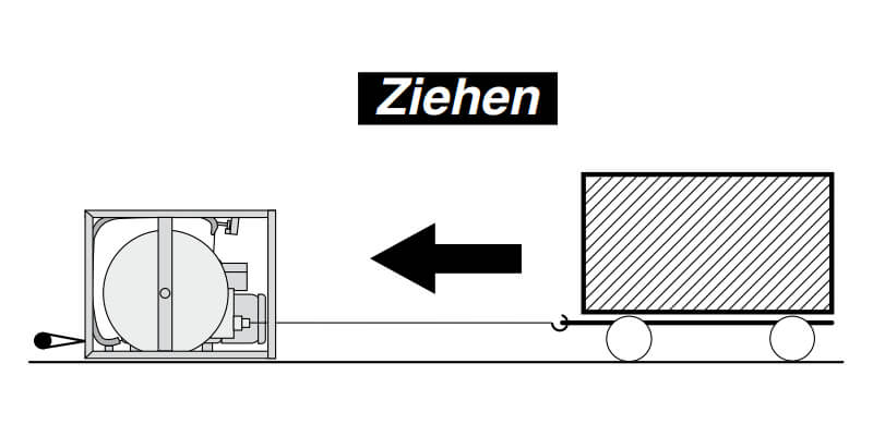 Der mobile Tirak kann auch zum Ziehe verwendet werden. Hier besonders im Traversierbetrieb für den Wechselnden Betrieb in zwei Richtungen.