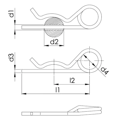 Die Federstecker DIN 11024 von Kleinsorge sind federnde Sicherungselemente aus vergütetem Stahl, die zur schnellen und formschlüssigen Sicherung von Bolzen und Achsen eingesetzt werden. Durch ihre galvanisch verzinkte Oberfläche sind sie gut gegen Korrosion geschützt und eignen sich für den dauerhaften Einsatz in Maschinenbau, Landtechnik und allgemeiner Befestigungstechnik. Ein breites Abmessungsspektrum von kleinen bis größeren Drahtdurchmessern mit abgestimmten Längen ermöglicht die zuverlässige Sicherung unterschiedlichster Wellen- und Bolzenabmessungen.