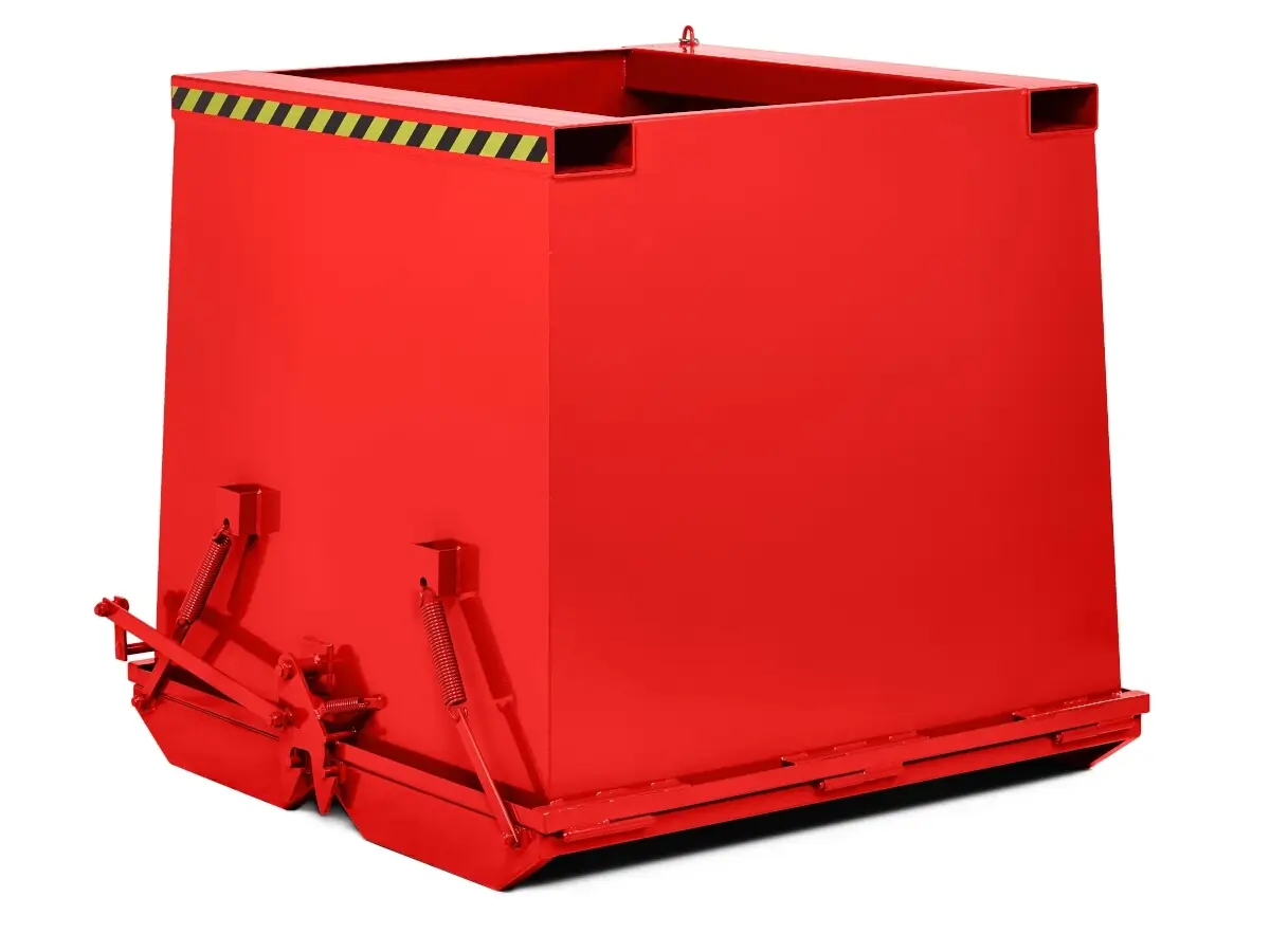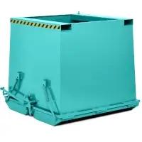 Durch seine robuste Bauart und einer hohen Traglast, ist der Klappbodenbehälter die ideale Ergänzung zur Sammlung von schweren Produktionsrohstoffen. Durch die Glockenform verhindert man eine Stauung und garantiert eine vollständige Entleerung. Beim Absetzen schließt sich die Bodenklappe von alleine. Die Entriegelung per Seilzug vom Staplersitz spart viel Zeit und ist zudem körperschonend und sicher. Eine zusätzliche Kettensicherung verhindert das Abrutschen von den Gabelzinken.