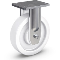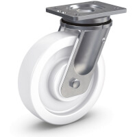 Für den Transport schwerer Lasten in Industrie, Logistik und Handel bieten wir Ihnen qualitativ hochwertige Lenk- und Bockrollen an. Die Schwerlastrollen sind mit hochwertigen thermoplastischen Kunststoff-Rädern bestückt. Der Kunststoff basiert auf Polyamidbasis. Er ist besonders abriebfest, hat einen niedrigen Reibungskoeffizienten und verträgt hohe Tragkräfte ohne großen Verschleiß. Die Räder in schwerer Ausführung sind mit Rillenkugellagern (/5) ausgestattet.