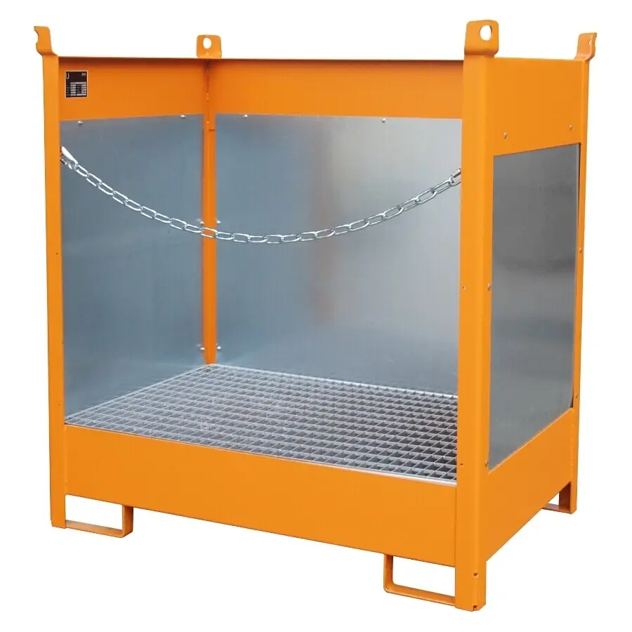 Die Fass-Staplerpalette FSP wahlweise mit Gittern oder Seitenwänden erhältlich.