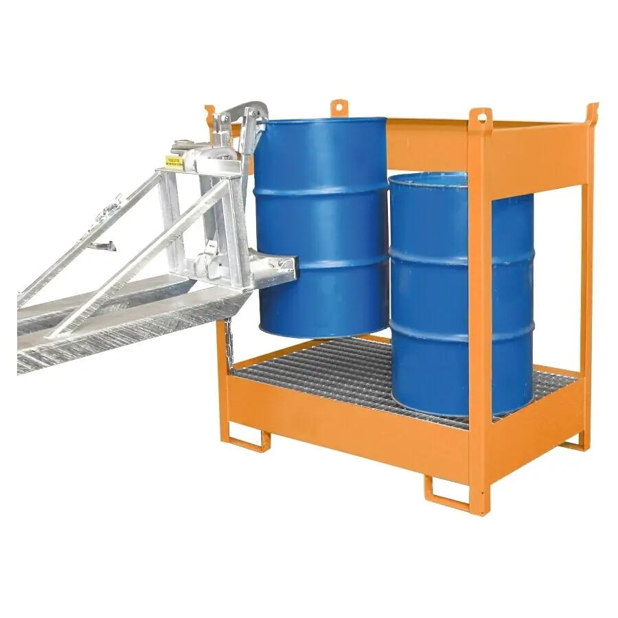 Die Fässer lassen sich mit Hilfe von Fassgreifern oder Fasszangen über ein Hebezeug auf das Gitterrost verfrachten. Lastaufnahmemittel wie Gabelstapleranbaugeräte ermöglichen ein Beladen der Staplerpaletten mittels Gabelstapler. Hierbei verhelfen Fasslifter oder Fassheber die Fässer mühelos auf die Auffangwannen zu stellen.