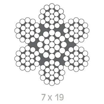 Das Edelstahlseil 7x19 besteht aus 7 Litzen á 19 feinen Drähten. Es ist äußerst biegsam und damit ideal als Windenseil einsetzbar. Bewegliche, aufgetrommelte oder umgelenkte Seile werden stark auf Biegewechsel beansprucht und bedürfen damit einer großen Flexibilität. Um die Lebensdauer der Seile zu begünstigen ist auf große Trommel- und Seilscheibendurchmesser zu achten.