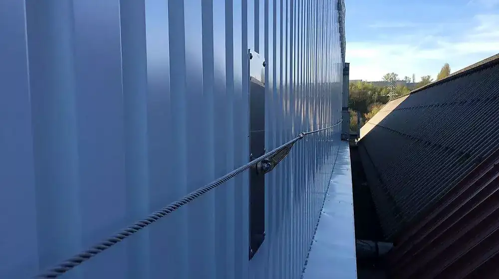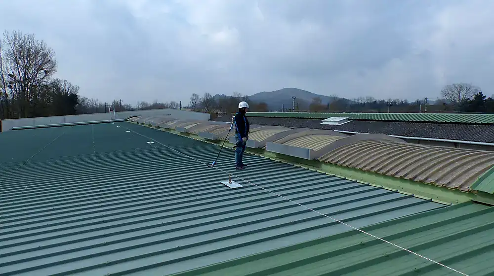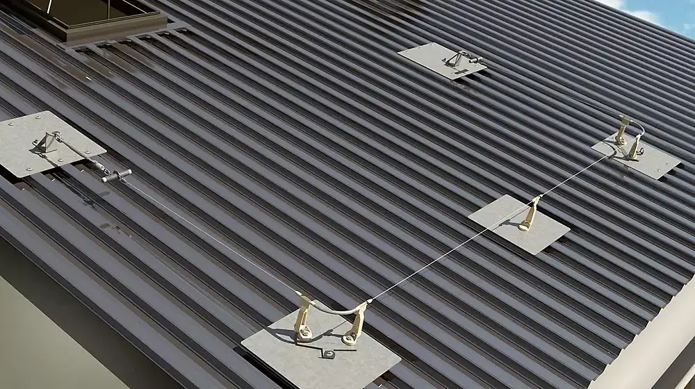 Das Travflex™ 2 Einseil-System ermöglicht eine reibungslose Bewegung des Läufers über Zwischenanker und um Ecken – ohne zusätzliche Unterstützung. Die Hände des Benutzers bleiben frei für die Arbeit. Das System ist ideal für leichte Strukturen wie Stahldächer, da es die auf die Struktur übertragenen Kräfte im Falle eines Sturzes begrenzt.