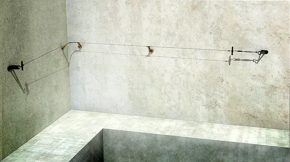 Das Travflex™ 2 ist eine permanente horizontale Absturzsicherung, die bis zu 3 Benutzer mit 100 kg oder 2 Benutzer mit 150 kg trägt. Alle Komponenten, wie Auffanggurte und Verbindungsmittel, müssen für 150 kg ausgelegt sein, um die Sicherheitsanforderungen zu erfüllen. Das System ist einfach zu installieren und kommt mit einem visuellen Spannungsanzeiger sowie Energieabsorbern.