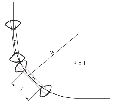 Große Radien erleichtern die Kurvenfahrt der Fahrwerke. Für eine optimale Kurvenfahrt der Transporthänger, darf der Achsabstand der Fahrwerke nicht größer sein als der Kurvenradius.